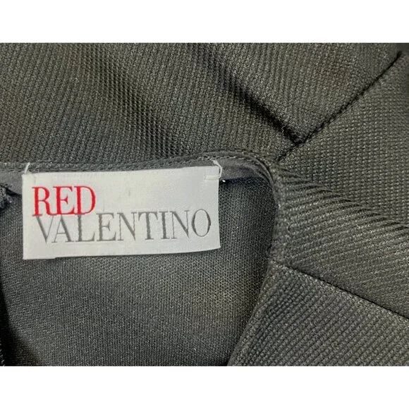 An elegant dress for your next special event, this style from Red Valentino is a charmer.A structural shift silhouette is enhanced with a ruffle down the front and a deep ruffled hem.Made of a polyester blend, this fabric has a grosgrain finish and is fairly substantial and will keep its shape all evening. Zippered back.In excellent, like-new condition.Italian size 40.I am a top-rated seller and ship quickly!